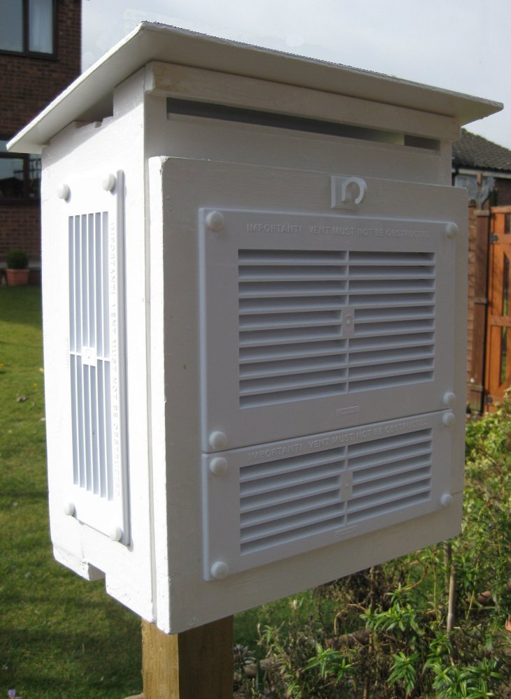 This is important to make it so that you can compare your weather data to other people's weather data. If you are very lucky you will be able to afford a Stevenson Screen. If not, don't give up. This page has details of how you could easily and cheaply make a weather box to keep your instruments in. Although they are not as good as a real Stevenson Screen, they will give you a chance to collect some useful data. If you do use any of the instructions to make your own weather box, please send us a photograph of it when it is installed! These homemade weather box instructions are simply guides. They are intended to be made by adults taking sensible safety precautions. The user is responsible for his/her own well being and safety.